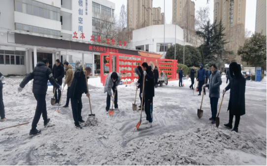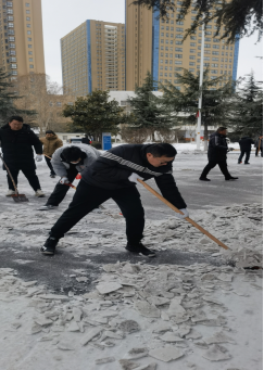 虽然天气寒冷,但大家的热情却丝毫没有受到影响。在大家的齐心协力和分工合作下,学校北门通往教工3村道路的积雪冰块被清扫干净,给师生创造一个安全畅通的出行环境。