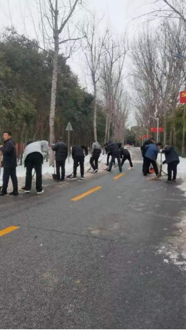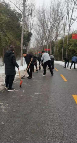 在扫雪过程中,老同志奋勇当先,年轻的同志冲锋在前,女同志们也不甘示弱。有的用铁锹向两边清理积雪,有的在后面奋力用扫把扫雪,积雪溅在衣服和鞋上也毫不在意,扫雪现场一片繁忙景象。他们不怕辛苦,不怕劳累, 一个个干劲十足。大家在雪地里的身影构成一道亮丽的风景线,彰显了同志们团结的力量和奉献的精神。