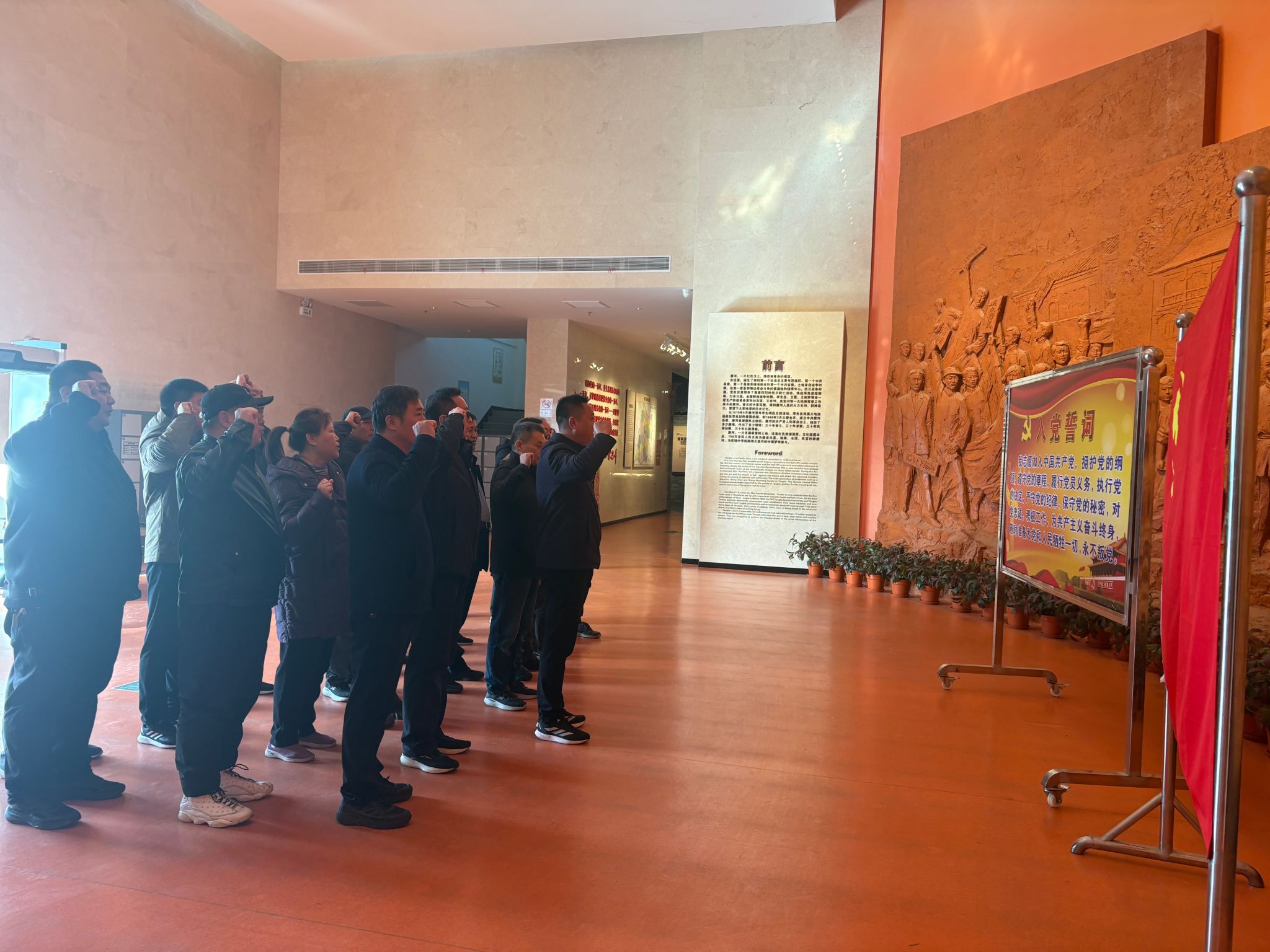 在纪念馆大厅,全体党员面向鲜红党旗庄严宣誓,重温入党誓词。随后,在讲解员引导下,大家通过实物、图片、文字及声光电等现代化展陈手段,深切感受革命先烈抛头颅、洒热血的壮阔历程,一幕幕惊心动魄的战斗场景,将同志们带回艰苦卓绝的峥嵘岁月,大家不时驻足凝视,仔细研读史料,深刻领会先辈们用青春与热血铸就的“不屈不挠、英勇奋战”精神。