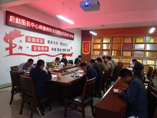 4月21日上午,后勤服务中心师德师风专项整治月活动工作会在第一会议室召开,会议由中心主任闫合占主持,其他领导班子及科级干部参会。