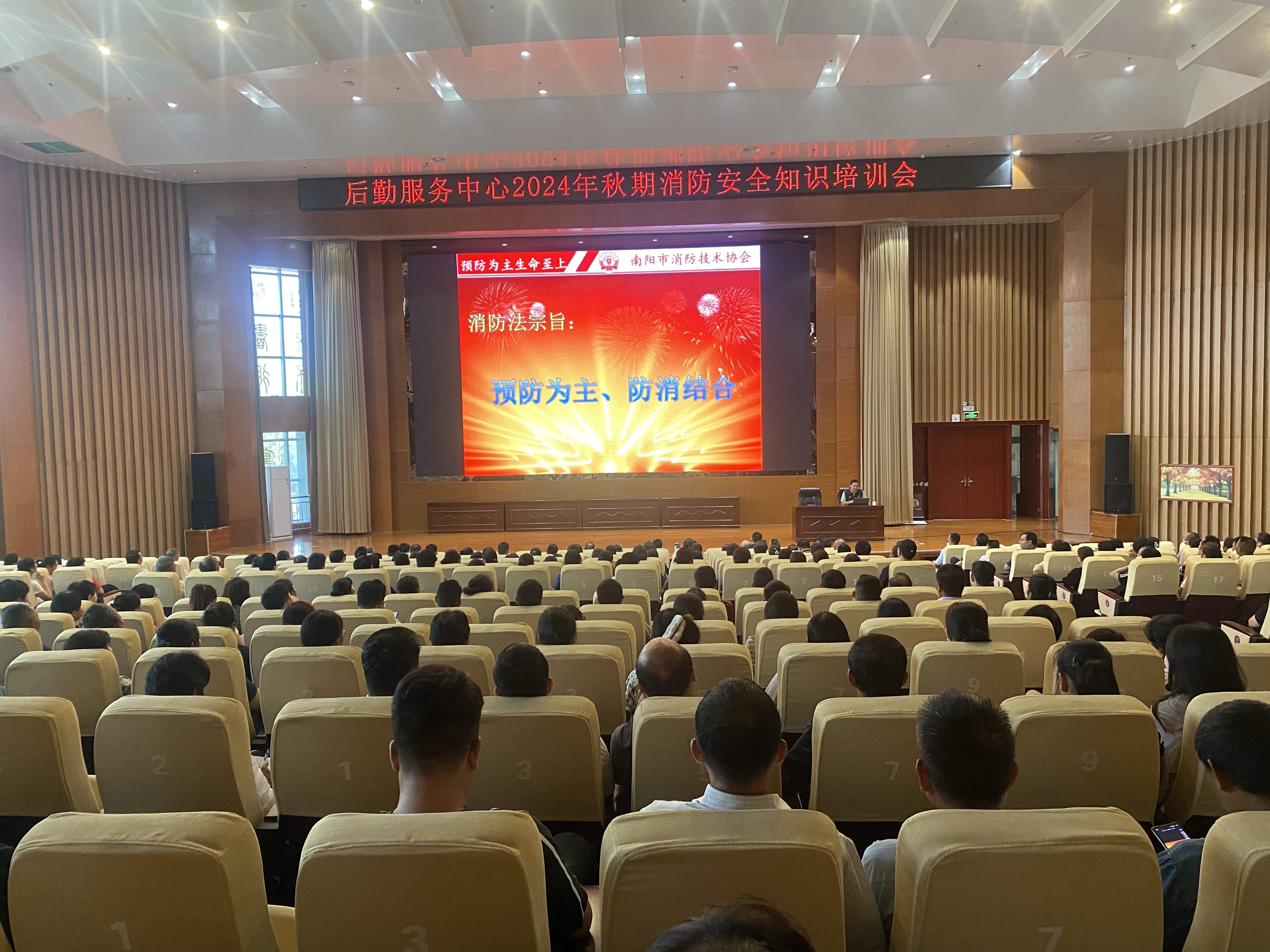 为进一步加强消防安全宣传教育,在中心营造“人人讲安全,个个会应急”的良好氛围,切实提升员工消防安全意识和应急避险能力,确保学校的安全稳定,9月11日下午,后勤服务中心特邀请南阳消防技术协会副会长贾宗圣来校举办消防安全知识培训。培训会在第三报告厅进行,后勤服务中心副主任胡冰主持,后勤全体员工及第三方工作人员约400余人参加。