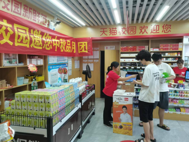 活动二“天猫超市中秋送月饼”:9月15日,后勤服务中心组织天猫校园超市开展主题为“中秋月圆人团圆 天猫校园送月团”的“购物满减送月饼”和“免费品尝月饼”活动,提供1500块爱心月饼,惠及师生1000余人次。