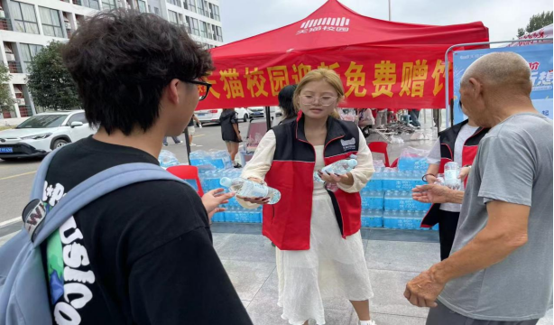 活动一“迎新现场免费赠饮”:9月6-8日,后勤服务中心携手天猫校园超市在体育馆东侧迎新现场开展“免费赠饮”活动,向新生及家长赠饮200箱矿泉水约3000余人次。