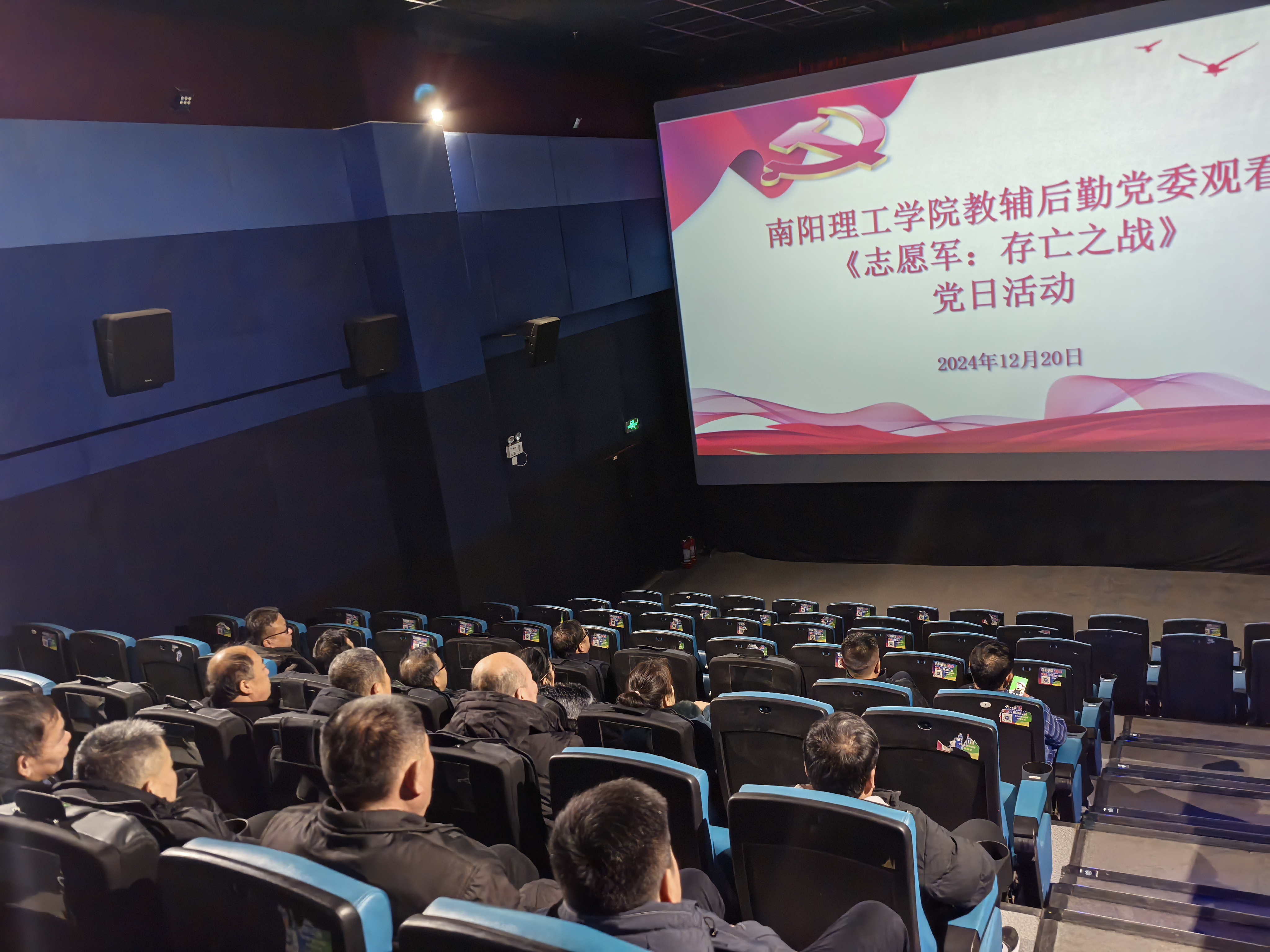 12月20日下午,为深入学习贯彻党的二十大和二十届三中全会精神,发扬“敢为人先、爱拼会赢”的拼搏精神,教辅后勤党委开展“弘扬爱国主义精神,传承红色基因”主题党日活动,组织党员集体观看红色电影《志愿军:存亡之战》。