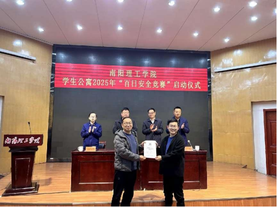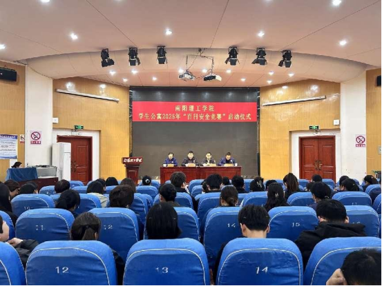 本网讯(特约记者/李骏)3月13日下午,南阳理工学院在学校第二报告厅举办学生公寓“百日安全竞赛”启动仪式。会议邀请了南阳市消防救援支队防火监督科王润宇。保卫处、后勤服务中心相关同志,楼层长同学代表共一百余人参加会议。