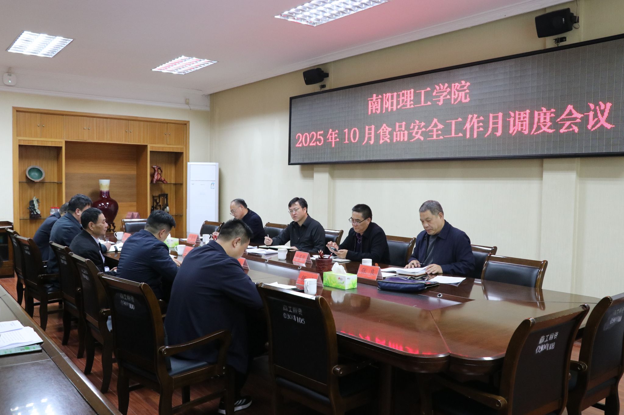 本网讯(特约记者/贾小真)11月5日上午9时,我校在第一会议室召开了2025年10月食品安全工作月调度会议。副校长吴战勇、党委巡察办公室、依法治校办公室、保卫处、团委、学生处、后勤服务中心等食品安全工作领导小组成员单位参加会议。