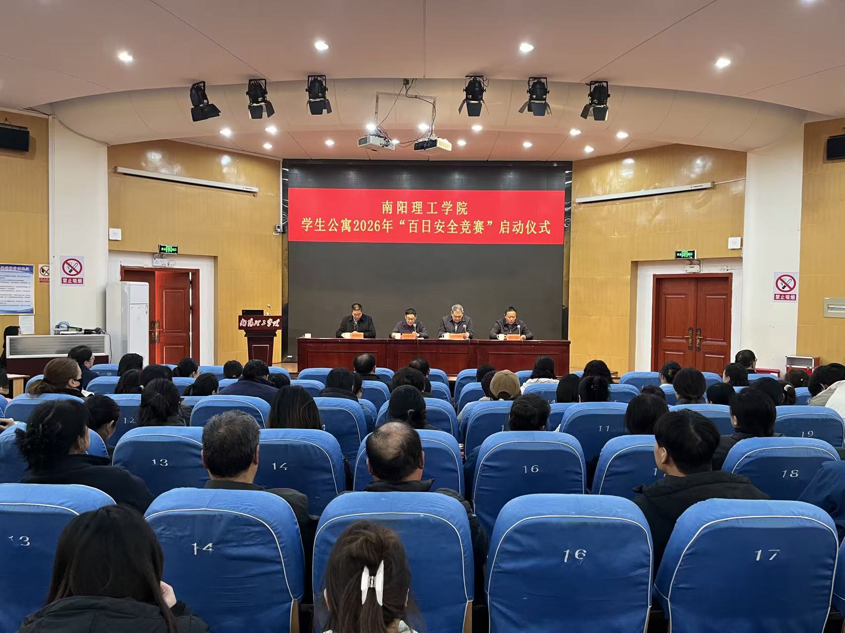 3月19日下午,南阳理工学院在学校第二报告厅举办学生公寓“百日安全竞赛”启动仪式。会议邀请了南阳市消防技术协会资深教员、消防安全教育专家曾凡义。保卫处处长何云亭,后勤服务中心主任张良、副主任胡冰,公寓科全体员工及楼层长同学代表共一百余人参加了会议。