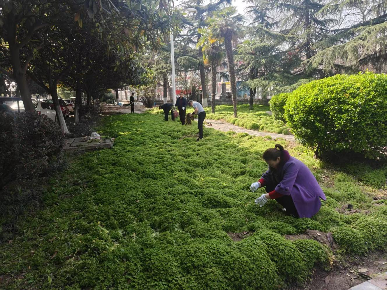 3月27日,房产管理科组织科室员工奔赴北大门两侧绿地,集中开展杂草杂物清理与树木抹芽养护工作。现场众人齐心协力,仔细清除绿地内杂草、捡拾白色垃圾及废弃杂物,精心为树木抹芽整形,有效美化了绿化景观,提升苗木生长品质。