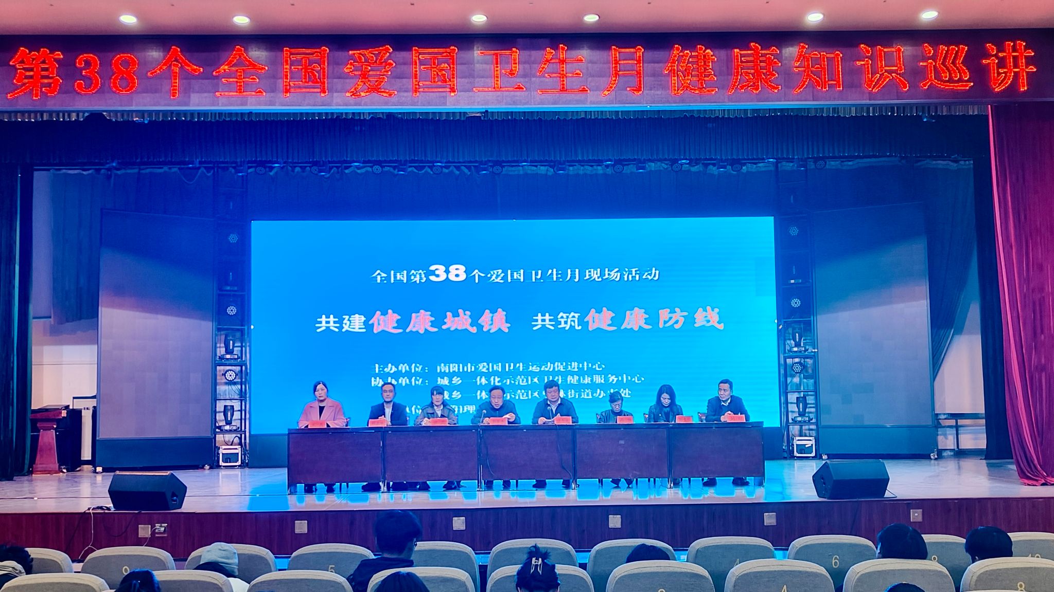 为积极响应第38个全国爱国卫生月 “共建健康城镇 共筑健康防线”号召,切实提升师生健康素养、树立科学健康理念,2026年4月21日下午,健康知识巡讲活动在我校毕业大厅顺利举行。本次活动由我校联合南阳市爱国卫生运动促进中心、城乡一体化示范区卫生健康服务中心、城乡一体化示范区枣林街道办事处共同举办,聚焦“健康体重管理”与“无偿献血”两大主题,为现场师生带来了一场实用生动、贴近生活的健康知识普及。
