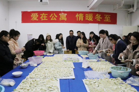 12月20日上午,在冬至佳节来临之际,后勤管理与服务中心公寓科在我校各公寓楼组织了“爱在公寓·情暖冬至”大型体验式师生互动联谊活动。后勤中心领导和同学们共叙冬至文化,勉励同学们不忘中华传统,刻苦学习,报效国家,在全校17个活动现场共有来自各学院的1500余名同学参与了此次活动。