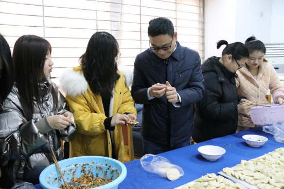 为了保证活动的圆满成功,公寓科的老师们提前两天就开始准备,为同学们准备了羊肉、猪肉、鸡肉、荠荠菜、胡萝卜、豆干、白菜、香菇、韭菜等品种丰富的饺子馅。活动通过讲述冬至由来的习俗、DIY包水饺、品尝水饺、为考研学生送水饺等环节,使同学们感受到了浓浓的节日气氛,虽远在他乡,却找到了家的感觉。