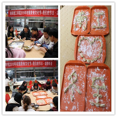 饺子情,三冬暖。为弘扬民俗文化,彰显传统文化魅力,继承传统习俗,丰富师生校园生活,12月22日,我校餐厅开展“南阳理工学院2019年校园美食文化节-我们的节日·温情冬至”师生体验包饺子、餐厅供应免费连汤水饺活动,活动惠及师生超15000余人次。