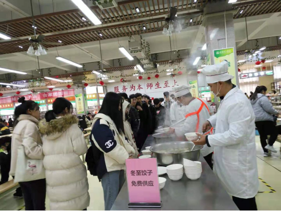 同时,学生餐厅在午餐、晚餐期间为广大师生提供了免费连汤水饺,让同学们在寒冬里感受到学校满满的温情。