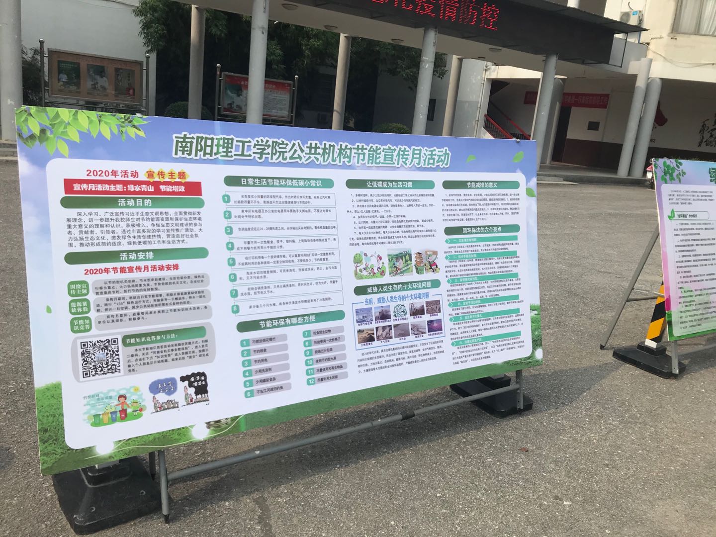 6月8至7月8是河南省公共机构节能宣传月,今年的主题是“绿水青山,节能增效”。为培养广大师生员工良好的节约环保习惯,强化资源忧患意识和节约意识,营造浓厚的节能环保校园氛围,南阳理工学院开展了内容丰富、形式多样的节能宣传活动。