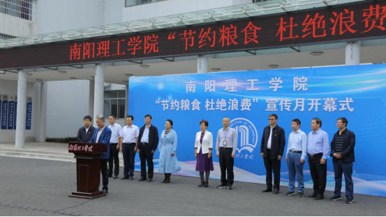 9月30日上午11点,“传承节俭美德,弘扬节俭精神——节约粮食,杜绝浪费”宣传月活动开幕仪式在领创空间广场举行,南阳市市场监督管理局城乡一体化示范区分局局长许荣凡,校党委书记刘荣英,副校长肖泽昌,纪委书记、监察专员许建辉出席开幕仪式,校党政办公室、党委宣传部、纪委、人事处、学生处、团委、后勤服务中心、各教学院领导及学生代表参加启动仪式。