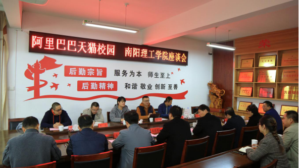 11月4日,阿里巴巴天猫校园事业部总经理邵雄一行莅临我校调研交流。座谈会在后勤中心会议室举行,副校长葛晨光及范蠡商学院、招生就业处、校地合作管理与服务中心、后勤服务中心(后勤管理处)等单位负责同志参加了座谈会。