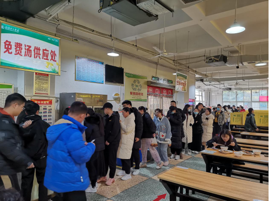 活动现场排起了长队,师生们积极参与,吃到蜜枣饺子的师生凭吃到的蜜枣饺子到服务台领到了定制款钥匙扣。此外,餐饮科还为师生准备了定制款冬至书签,让这个冬至更有纪念意义。