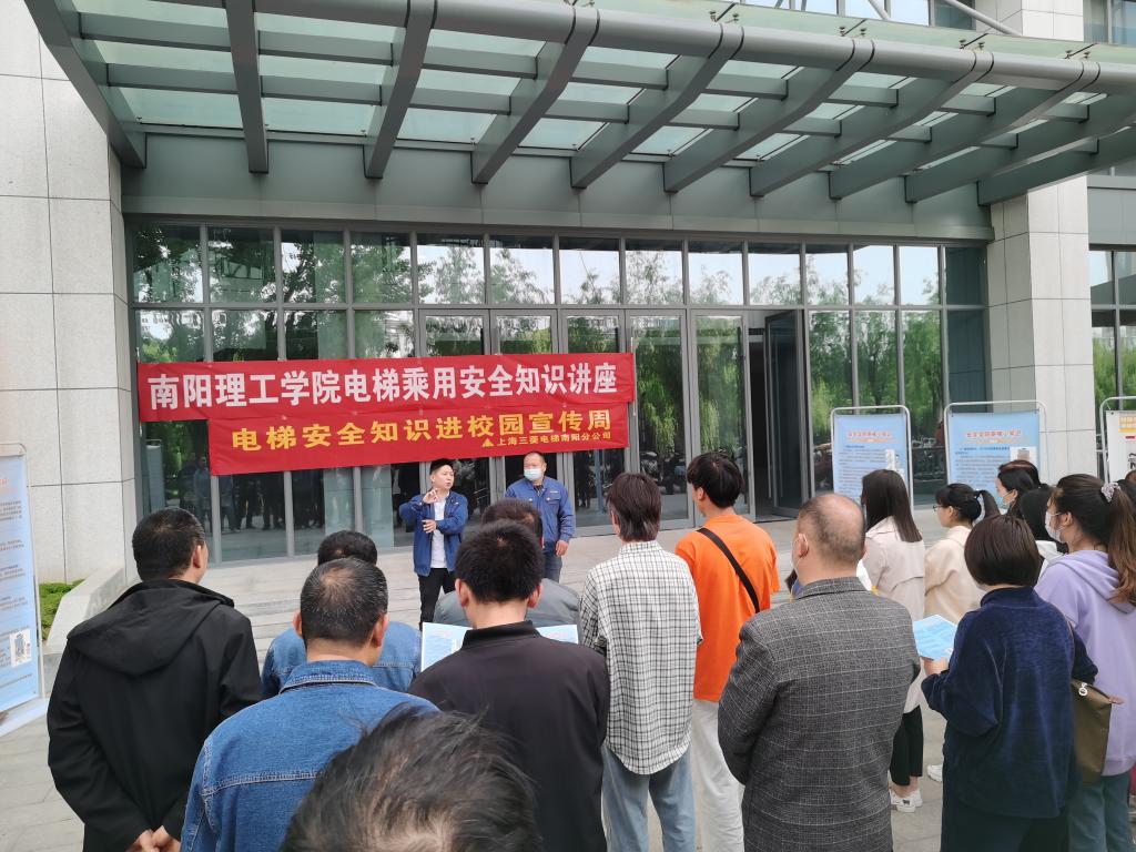 三菱公司专业人员通过挂图讲解,宣传图片等形式,对电梯的构造、使用、维保、管理及注意事项等方面作了详细讲解。同时,通过现场模拟“电梯困人应急救援演练”,帮助师生员工全面掌握电梯安全使用方法、安全乘梯要领、突发故障的应急救援方法等电梯安全知识。