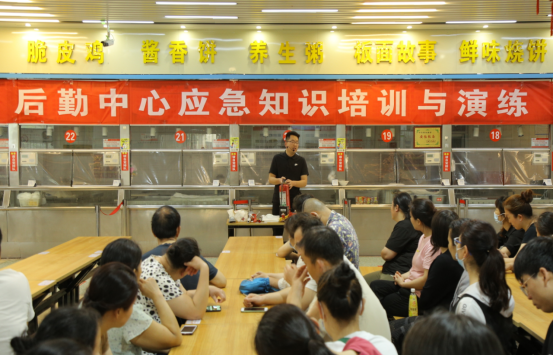 5月12日,在南苑餐厅开展防灾减灾知识培训与演练活动,300余人参加。首先,参会人员为“5.12”汶川大地震遇难同胞默哀三分钟;随后,安全专干对防灾减灾知识和相关技能进行讲解。培训后组织餐厅相关人员开展疏散演练和灭火演练。
