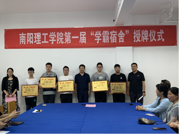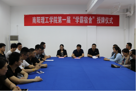 6月18日上午,后勤服务中心在19#学生公寓会议室举办南阳理工学院第一届“学霸宿舍”授牌仪式。后勤服务中心副主任王海、公寓科全体管理老师、“学霸宿舍”成员及楼层长代表共计60余人参加了活动。