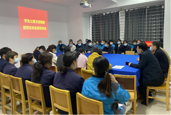 为切实提升学生公寓智能化消防防范能力,进一步增强一线员工消防防范水平,11月4日上午,公寓科在19#学生公寓一楼会议室组织开展无线烟感报警系统实操培训,科室全体管理老师、门卫师傅共计50余人参加了培训。