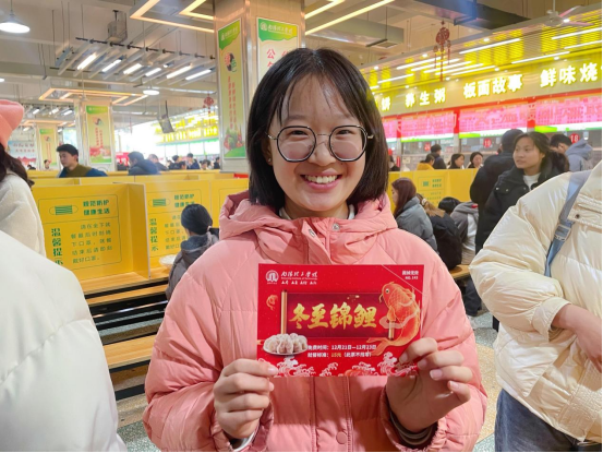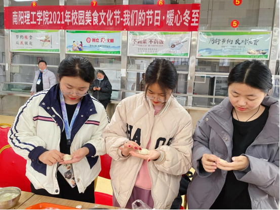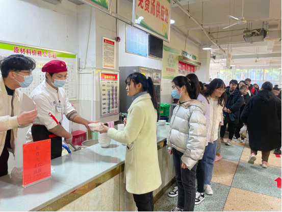 12月21日冬至当天,为了让师生感受冬至传统饮食文化,营造和谐校园氛围,进一步打造后勤餐饮文化品牌,后勤管理与服务中心餐饮科携餐饮公司共同开展“校园美食文化节-我们的节日·暖心冬至”系列活动。餐饮科在各餐厅为师生准备了免费连汤水饺、汤圆。吃到锦鲤水饺的同学领取了“冬至锦鲤餐券”,在寒冷的冬天吃到一份暖暖的免费午餐。师生在品尝水饺、汤圆时,不忘践行光盘行动,同学们在光盘后抽奖获得了心心念念的南工定制钥匙扣及金属书签并呼吁广大师生积极参与光盘行动,为节约粮食贡献一份力量。