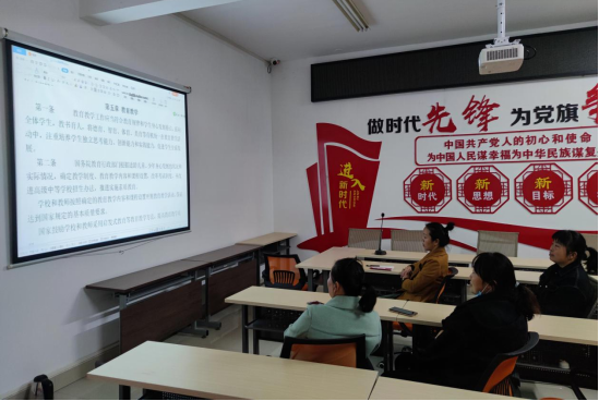 通过在微信、钉钉工作群中上传宣传教育学习资料;利用支部会、科务会学习讨论等形式组织人员认真学习宪法宣传周系列解读文章、视频、图说等;通过条幅、板报、电子显示屏等形式,悬挂张贴或滚动播出宪法宣传标语;通过“南阳司法行政在线”微信公众号,进行宪法知识有奖答题活动;以科室为单位,通过工作例会、专题学习会等形式,深入学习贯彻习近平新时代中国特色社会主义思想,特别是习近平法治思想,宪法、民法典、教育法和疫情防控等相关等法律法规和法律知识;通过线上线下相结合,迅速掀起学习热潮,加强教师队伍建设,努力提高广大教职员工的法治建设意识和观念,规范自身行为,营造了良好的校园环境。