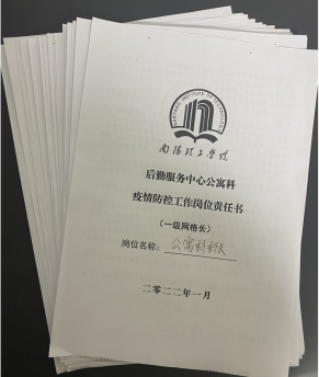 公寓科副科长王景洋、胡哲分别对《后勤服务中心公寓科疫情防控工作岗位责任书》《公寓科员工疫情防控承诺书》进行了详细解读。尤主任与公寓科科长华成志、华科长与各区域负责人、区域负责人与区域管理老师分别签订了《疫情防控工作岗位责任书》,科室全体员工签订了《疫情防控承诺书》。