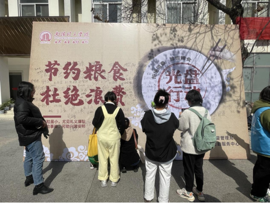 西北校区与东南校区餐厅门前,同学们积极参与本次宣传月活动,领取节约粮食杜绝浪费宣传手册并在签名墙签上名字,许下承诺,争做节约粮食宣传员,向家人、同学、朋友宣传浪费粮食的可怕后果。后勤服务中心秉承服务为本,师生至上的服务宗旨,从餐厅供餐做起,引导师生按需打餐,积极践行节约粮食杜绝浪费的理念,让光盘行动融入每位师生的日常生活当中。节约粮食,杜绝浪费,从你我做起。