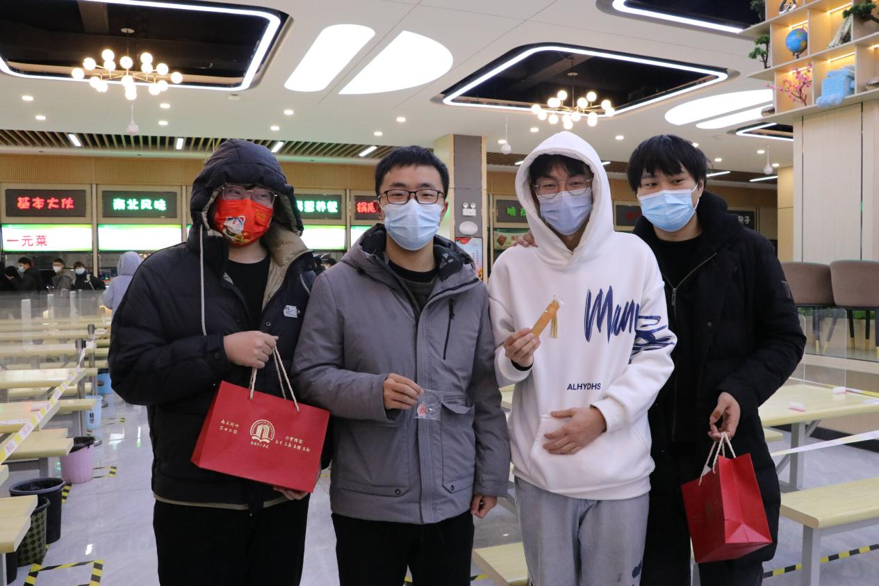 餐饮科在各餐厅为留校师生准备了免费连汤水饺、汤圆。师生在品尝水饺、汤圆时,参与趣味抽奖活动,获得了南工定制钥匙扣、金属书签、手套及考研大礼包等。生物与化学工程学院19级应用化学班的同学说:“今天的活动让我感觉心里特别暖,非常开心,很自豪被南工宠着,其他学校的同学非常羡慕我们”。在寒冷冬日让留校师生感受到学校的温情,营造温馨和谐的校园氛围。“天时人事日相催,冬至阳生春又来。”疫情终将过去,春天即将来临,后勤服务中心秉承“服务为本,师生至上”的宗旨,为师生提供更加贴心、暖心的后勤服务。(校对/胡冰 审核/闫合占)