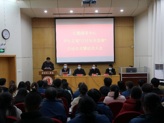 胡冰副主任对参加本次会议的各位老师和同学们表示热烈的欢迎,对公寓科近年来的工作予以充分的肯定,他还就举办“百日安全竞赛”的重要意义及要达到的效果进行了深入的解析,并预祝大家在竞赛中取得优异的成绩,为建设平安后勤做出贡献!