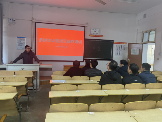 会上,崔志鹏首先介绍了我校目前多媒体教室的建设状况以及多媒体教学在日常教学中的重要性,并从多媒体教室的设备组成、设备简易操作流程和常见故障及排除办法等三个方面进行详细解说,并给予现场演示。