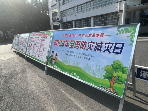 宣传周期间,学校悬挂防灾减灾宣传横幅、播放电子屏宣传标语,营造浓厚的宣传氛围,增强广大师生防灾减灾意识。