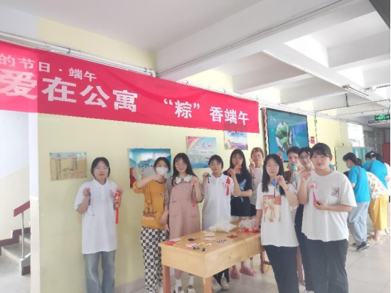 在各学生公寓活动现场,有讲端午习俗、用家乡话送祝福的,有表演节目、做互动游戏的,活动内容丰富多彩。各楼管理老师和门卫、保洁师傅还亲手教参与的同学们包粽子、做香囊。同学们积极参与、热情高涨,乐在其中,感受到了浓浓的节日气氛。