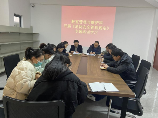 为增强科室员工的消防安全意识、提升消防安全能力,11月29日上午,教室管理与维护科在中心会议室召开消防安全管理规定专题培训学习。此次培训,科室全体人员参加,并邀请后勤中心安全专干王海鹏参加。