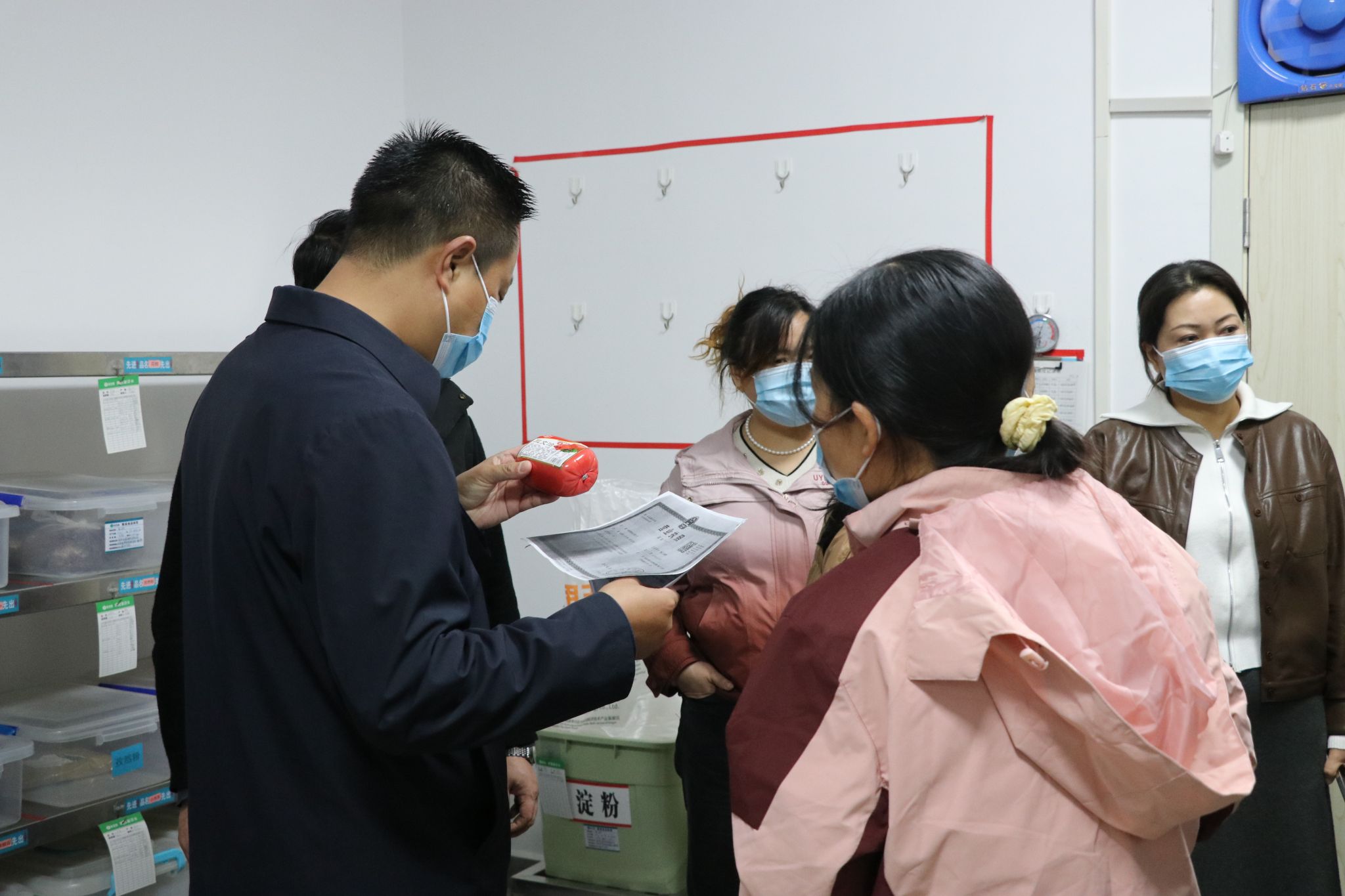 11月11日,后勤服务中心副主任胡冰带领餐饮科对学生餐厅进行了全面的食品安全专项检查。