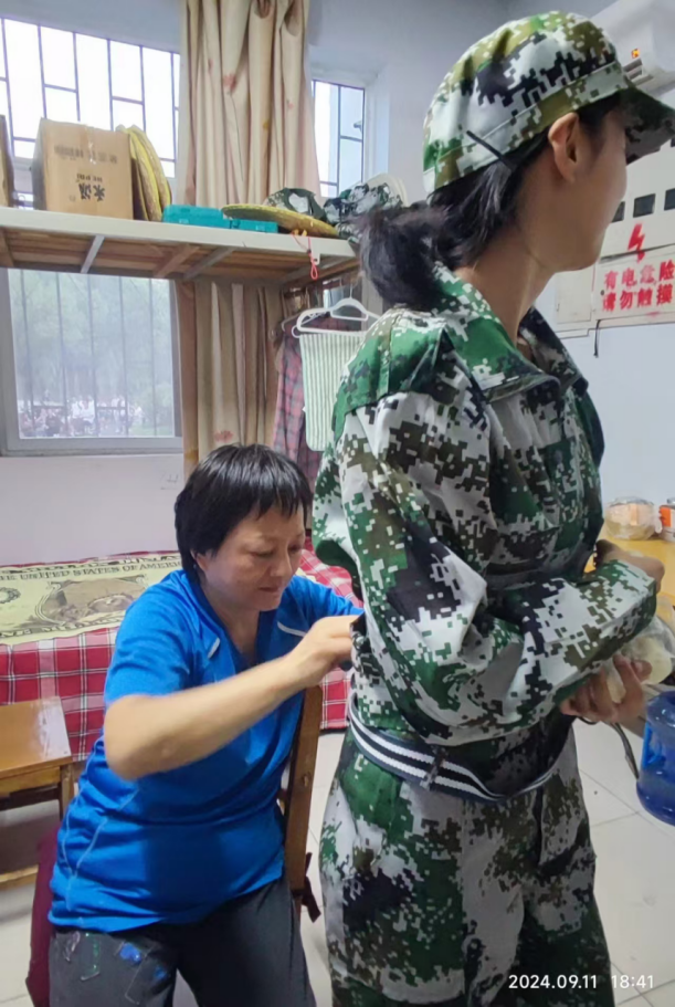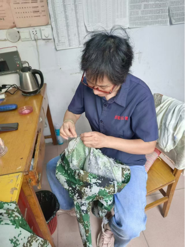 在紧张而艰苦的军训中,除了激情和热血之外,还弥漫着温馨和感动。小24们的军训服因频繁使用和高强度训练,难免会出现破损或磨损的情况,针对这一实际问题,后勤服务中心学生公寓积极行动起来,在各公寓楼组织门卫阿姨开展了“爱心缝补”活动,为军训学子送去了温暖与关怀。